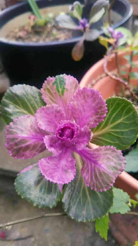 我が家には、これとは別の鉢で、数年前の葉牡丹を放置してたので、大きく育って、茎がグネグネ踊りまくっております~笑。