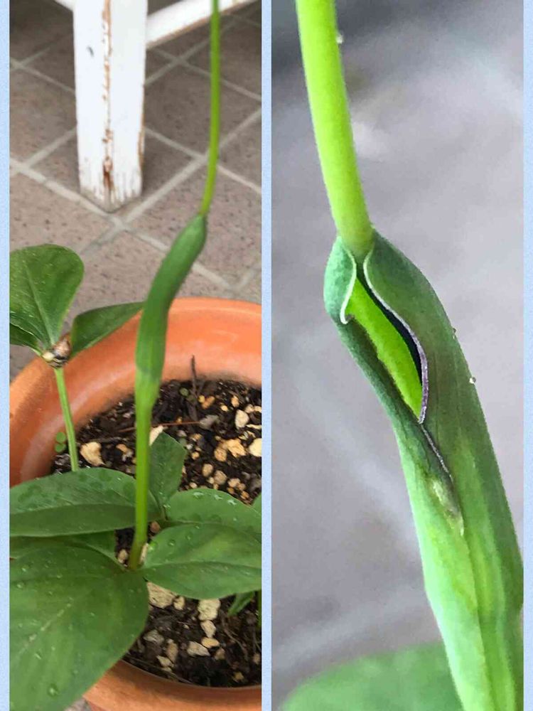 スパティフィラムは触ってもボロボロと落ちませんが、カラスビシャクは湧くように落ちます😅