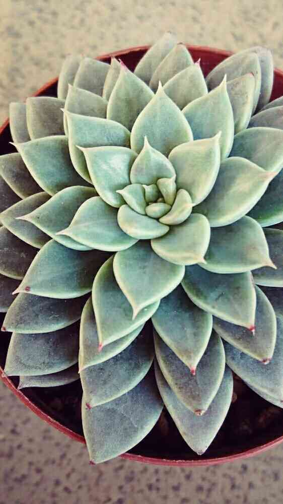 端整に規則正しく葉が折り重なりながら成長して、成長点付近は淡い緑のエメラルドグリーン色をしている。実は子持ちなのだが、形が崩れてない。