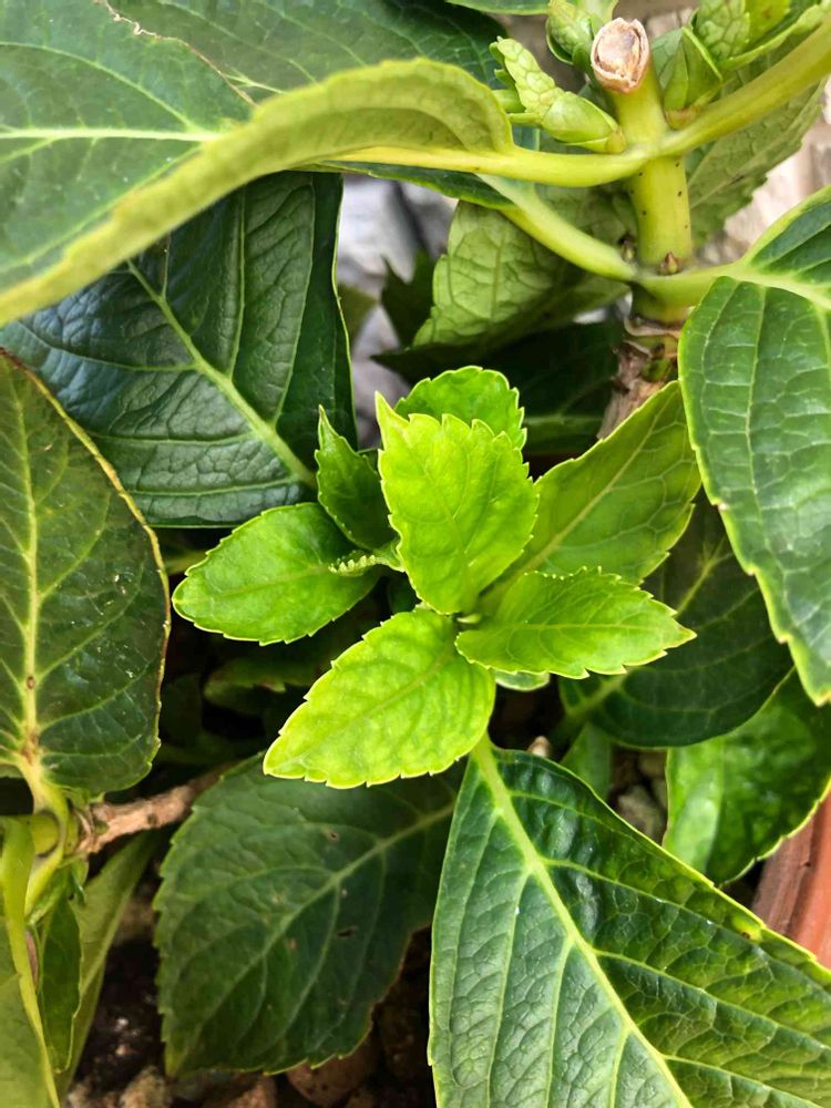 紫陽花の新しい芽が成長中🌱🌱🌱