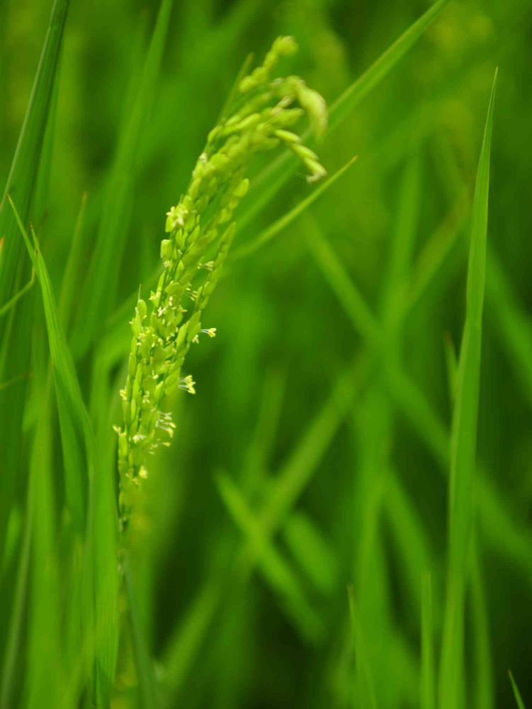 花びららしきものはほとんど確認出来ず小さな小さな蕊だけが飛び出しています。これが稲の咲いた状態なんです。こんなに小さいとほとんど近寄ってみないと見えませんね。なので稲の花いつ咲いていた?????って思うのです!