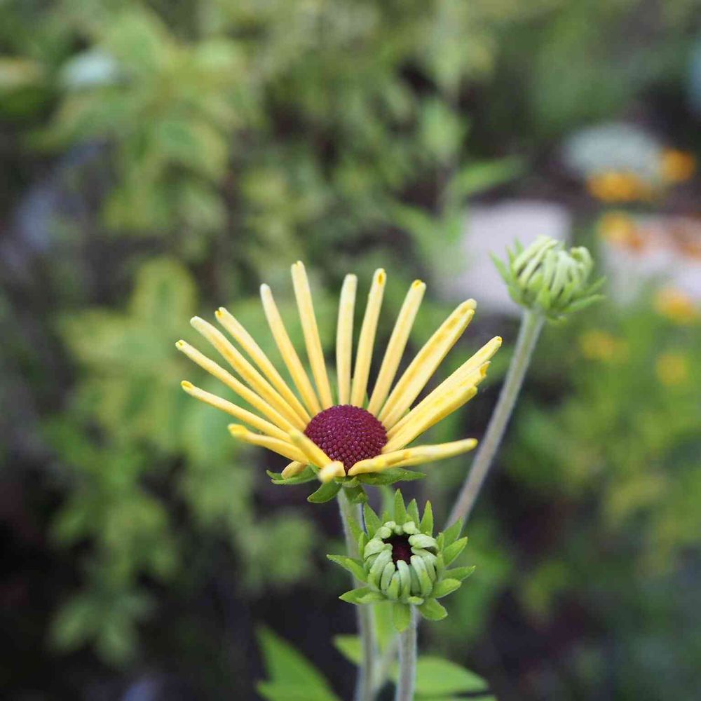 さん、ルドベキアいろいろありますよね。うちにも何種類かありますが、これが一番最後に咲きますこのストローみたいな花びらがいいんですよね😊