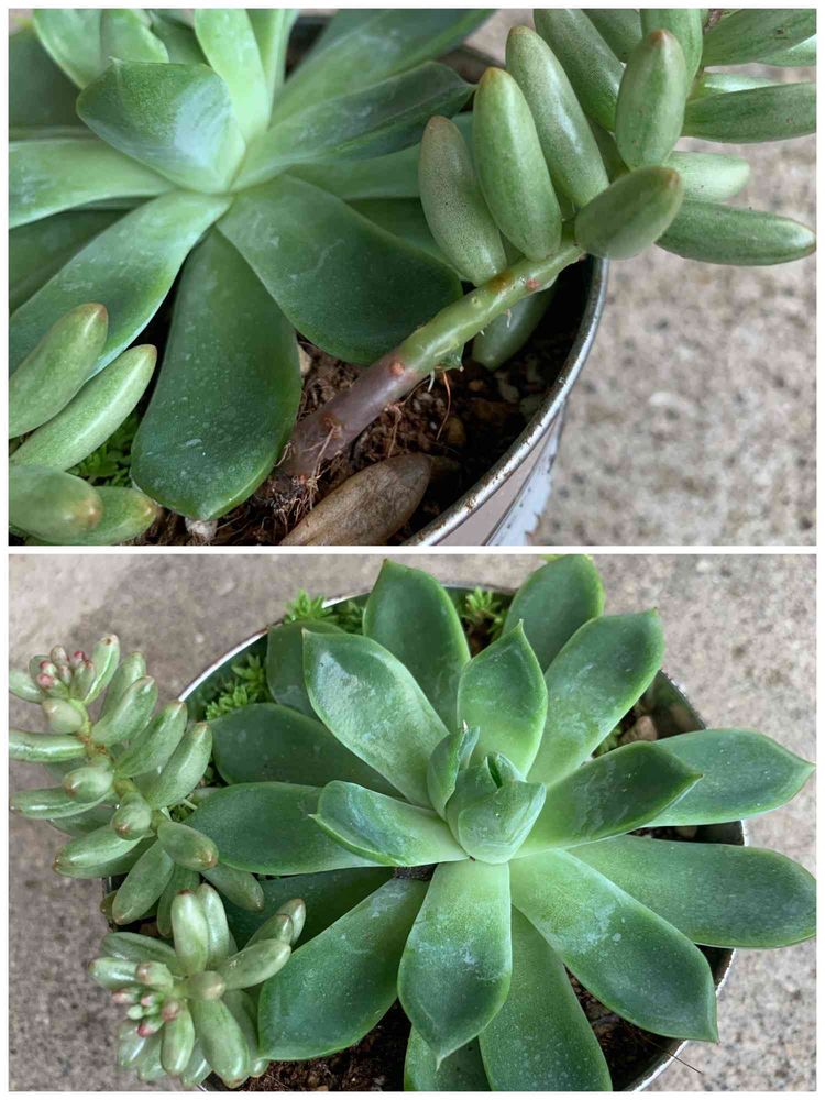 うちのフロスティーさんも、どうやら徒長気味らしいのですが、多肉初心者の私は、成長してる〜💕って喜んじゃってます🤣