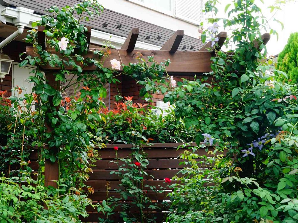 4月に新しく作ったお庭で、薔薇とクレマチスを中心に植栽しました😆✨✨
