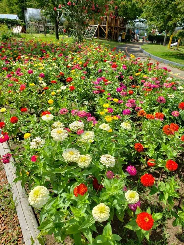 ハーブワールドの百日草が満開でした😊🌼