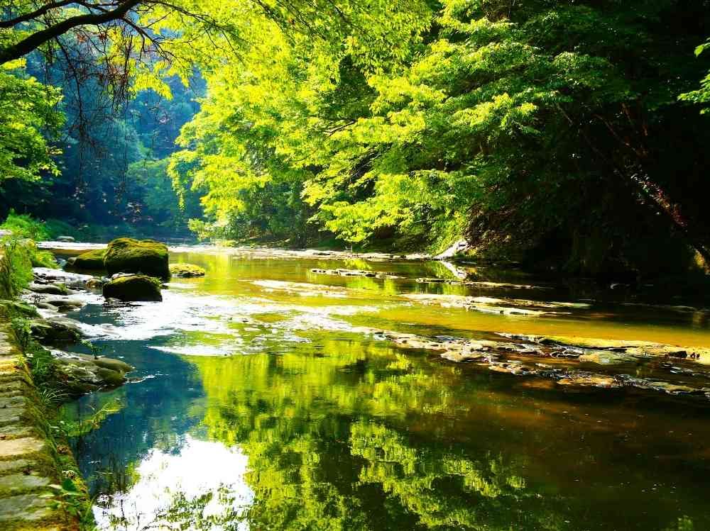 奥が川上かな。奥の方の濃い緑も、素敵。