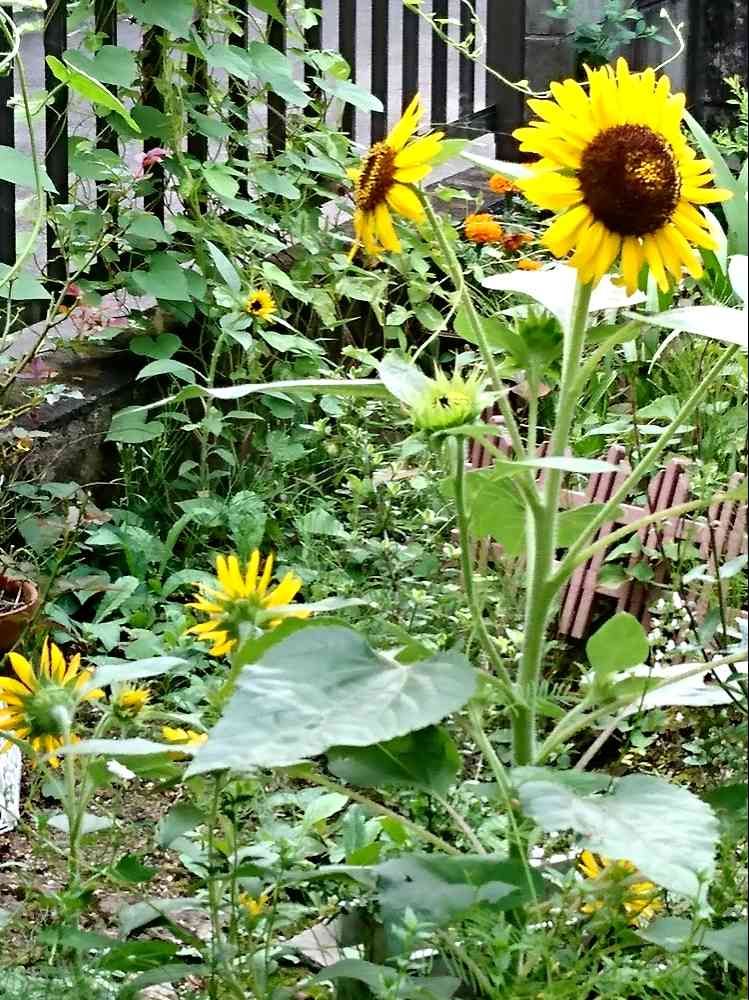 ひまわりが庭で咲いてて毎日ひまわりの花が見られるってイイですね🥰