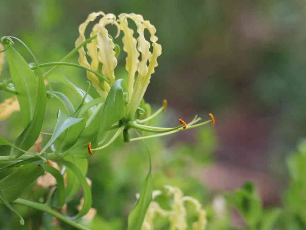 ローズガーデンの片隅に俯いて咲いていた、グラリオサ。