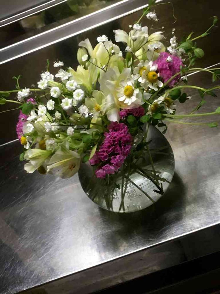 いつもシンクの前にすてきなお花を置いているんですね💕