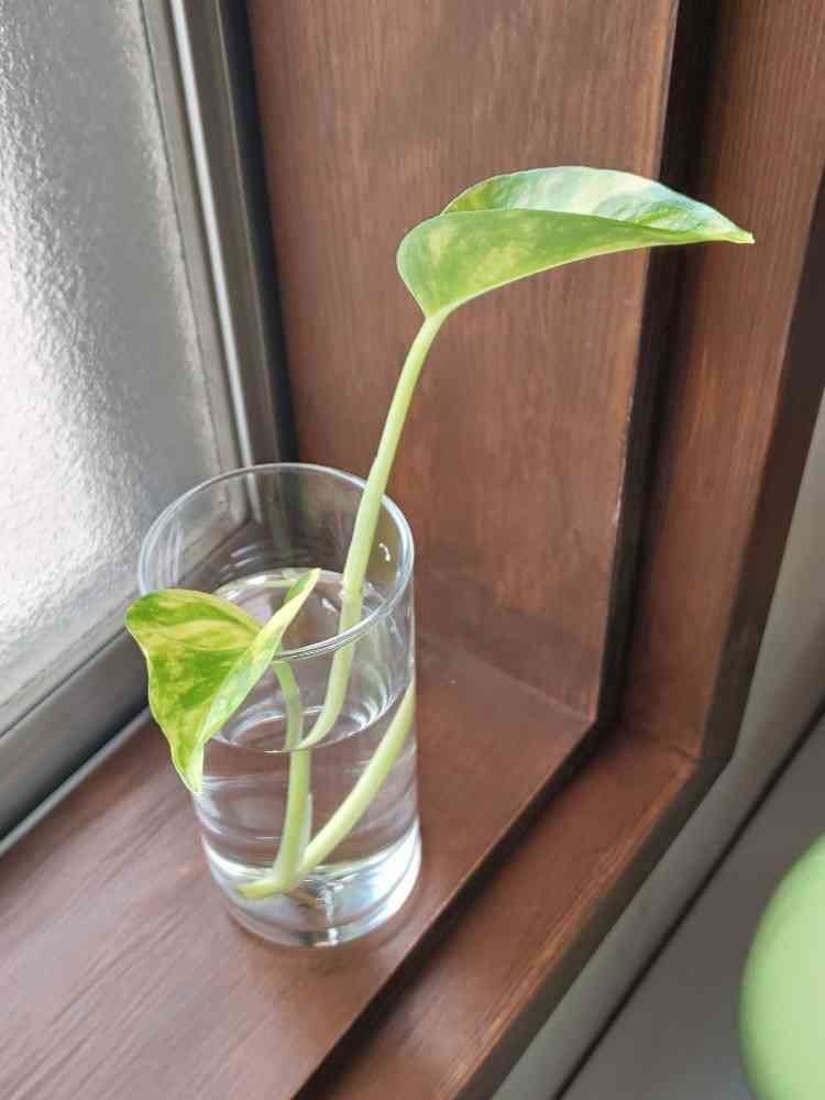 実家のポトスさんから拝借して水挿しに挑戦してみます🌱