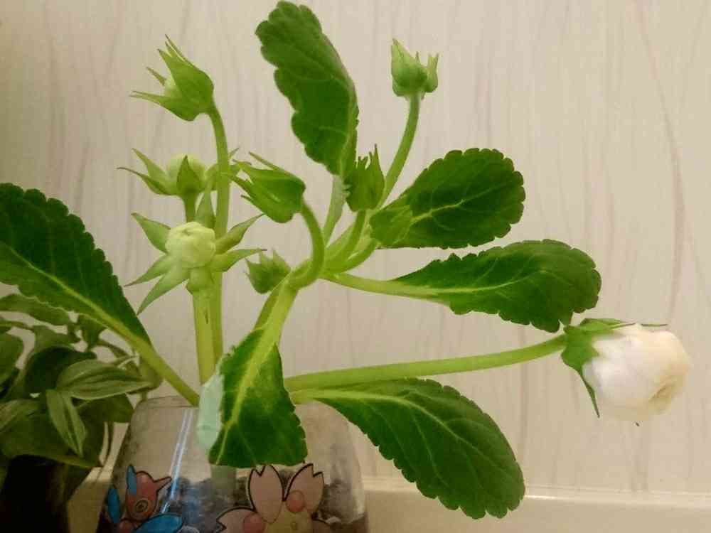 蕾がつきすぎた重みでポッキリ折れてしまったグロキシニア