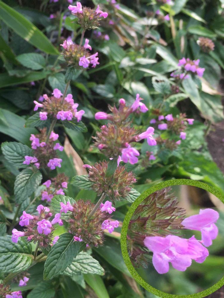 茎の上部に淡紅色の唇形(しんけい)花を数段輪生します💜