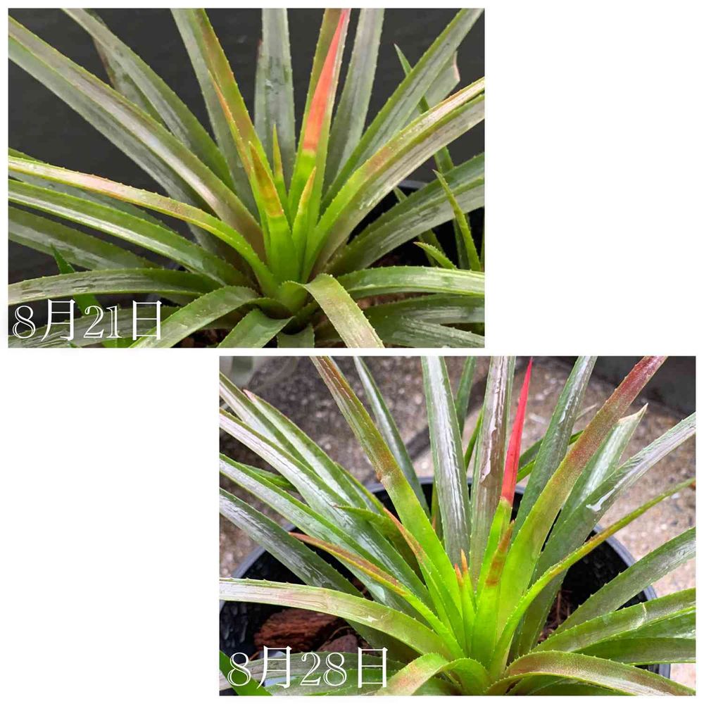 新芽も出てきて、一部は赤くなってきてくれました😊もうすぐ秋。日光減るから全身真っ赤は厳しいだろうな。でもできる範囲で頑張ってほしい🎶