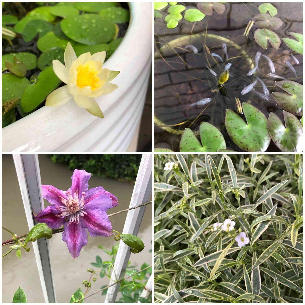 クレマチスや姫睡蓮が、これはお出迎えしなきゃ❗と頑張ったのかな💠🌻🎵