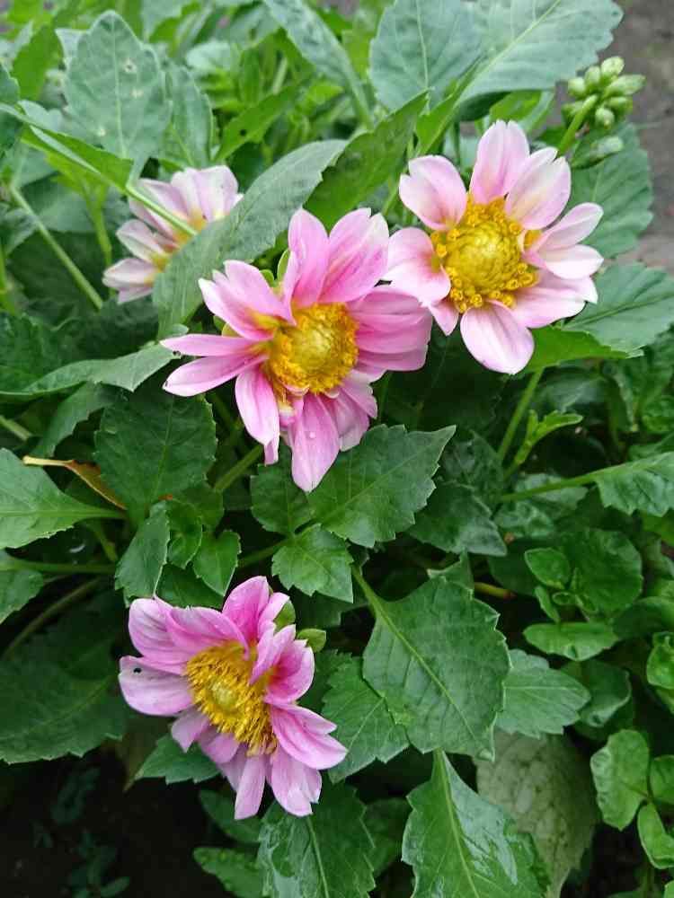 庭の ミニダリアです😄…この子は 最近 咲き始めました💕 可愛いピンク😆…丸い蕾に 萌え萌えです😅…