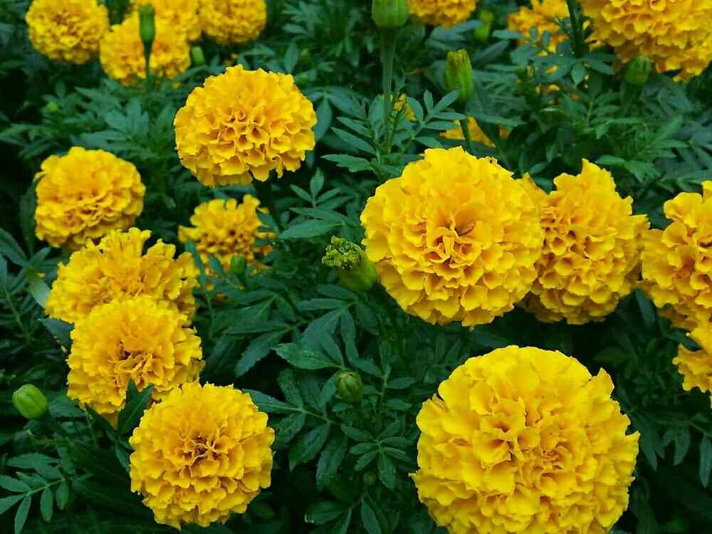私はアフリカンマリーゴールド 3株植えたのですがただ今 瀕死の状態です日差しが足りなかったのと鉢植えだったからかなぁ〜と反省しております💦