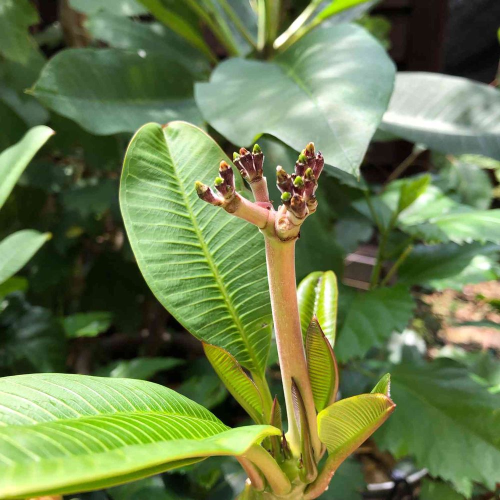 ビカクシダの板付用コルクを買おうと某フラワーセンターに行ったら花芽付きのプルメリアが格安だったので我慢できず買ってしまった。なんと意志が弱いのだろう〜!