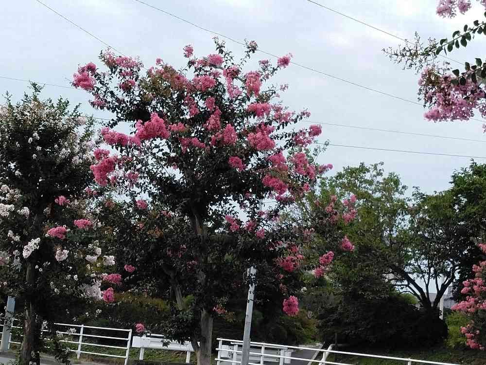 これは、白とピンクのグラデーションで道路脇を飾ってくれているサルスベリです。💖😃❇️💐🌈💗💝💞