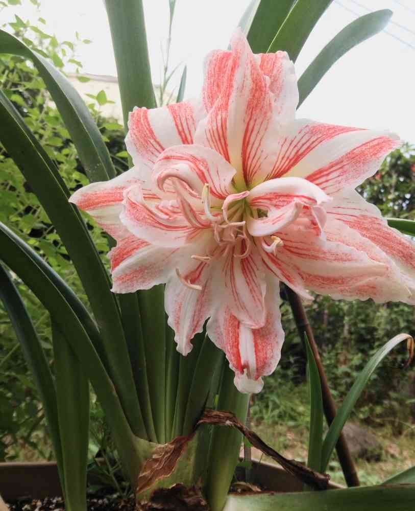 しましまのアマリリスの花!が咲くのって 今年2回目ですね。