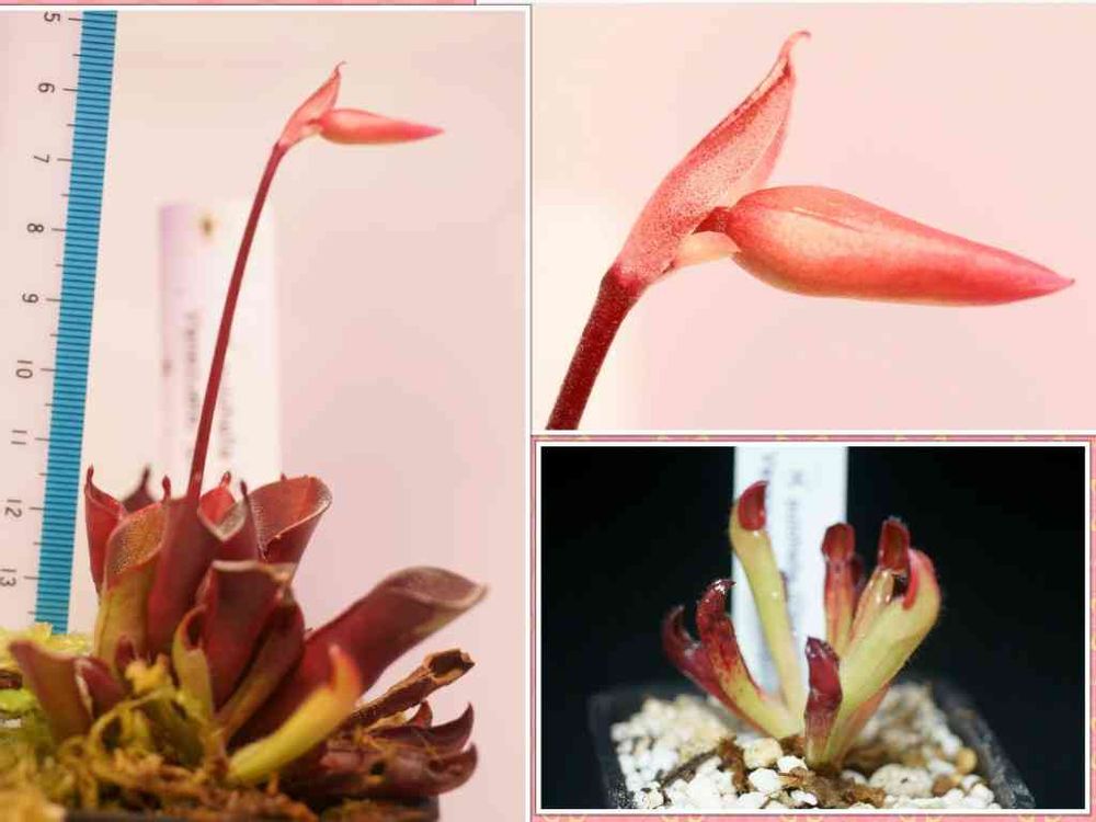 ついでに、去年12月に投稿したヘリアンフォラ プルチェラ(Heliamphora pulchella Chimanta Tepui)、第一苞葉から花芽が出てきました。