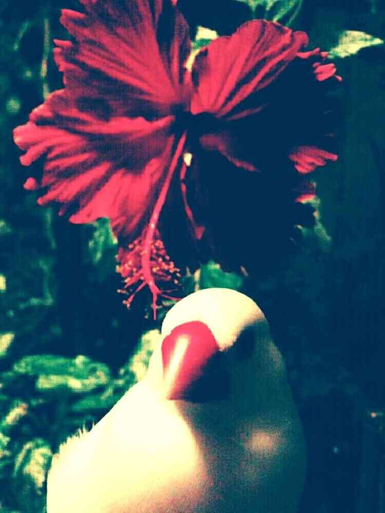 ハイビスカスと白文鳥と迷彩と昭和の香り