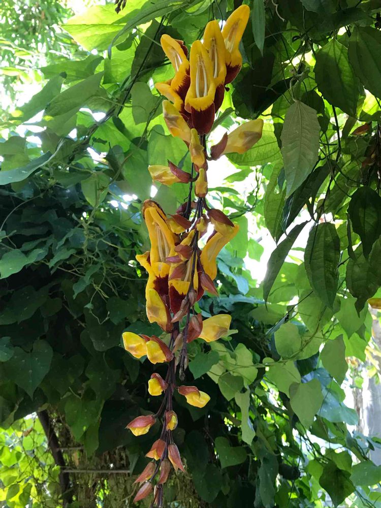 赤く見えるのは葉が変化した苞で、花弁の形がスリッパに似てることからlady's slipper vine(蔓)とも🥿