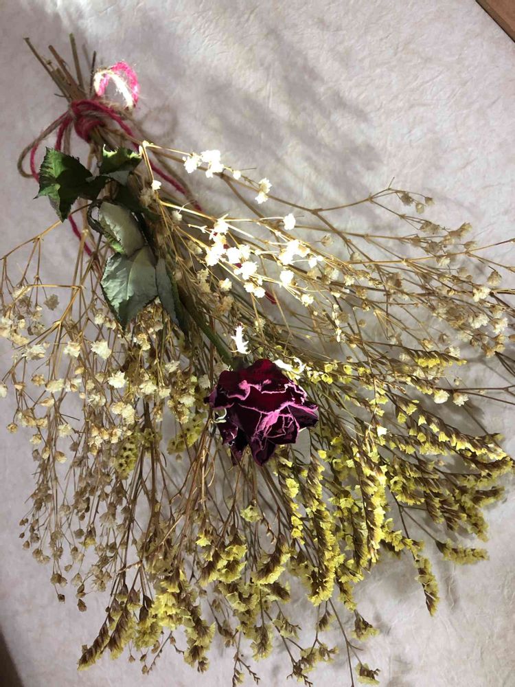 私の誕生日のお花で作ったドライちゃんと飾ってみました♡