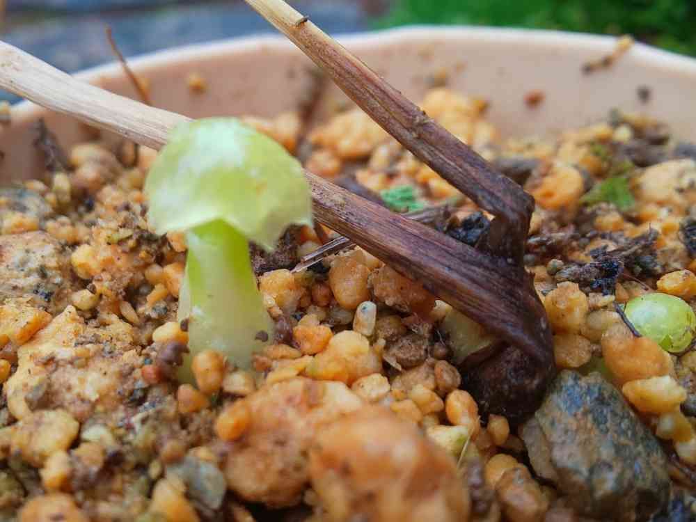 雨の中しばらくほっておいたら新芽が出ました、まるで🍄みたい、ホントに新芽?