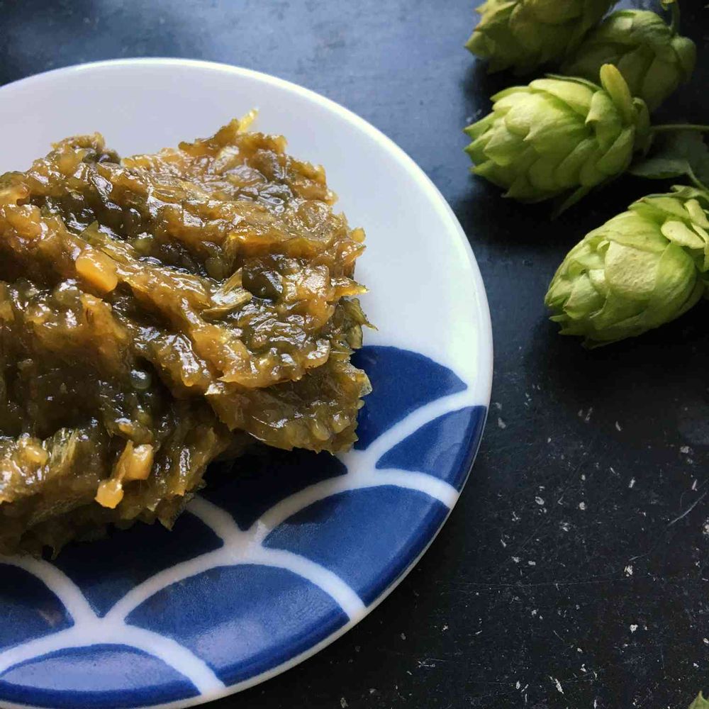農家の方に1枝だけ売ってもらって作りました。苦くて食べるのがキツい...😭でも貴重な味噌を使ったからには全部食べないと...😱残ったホップはドライフラワーにしました🌚