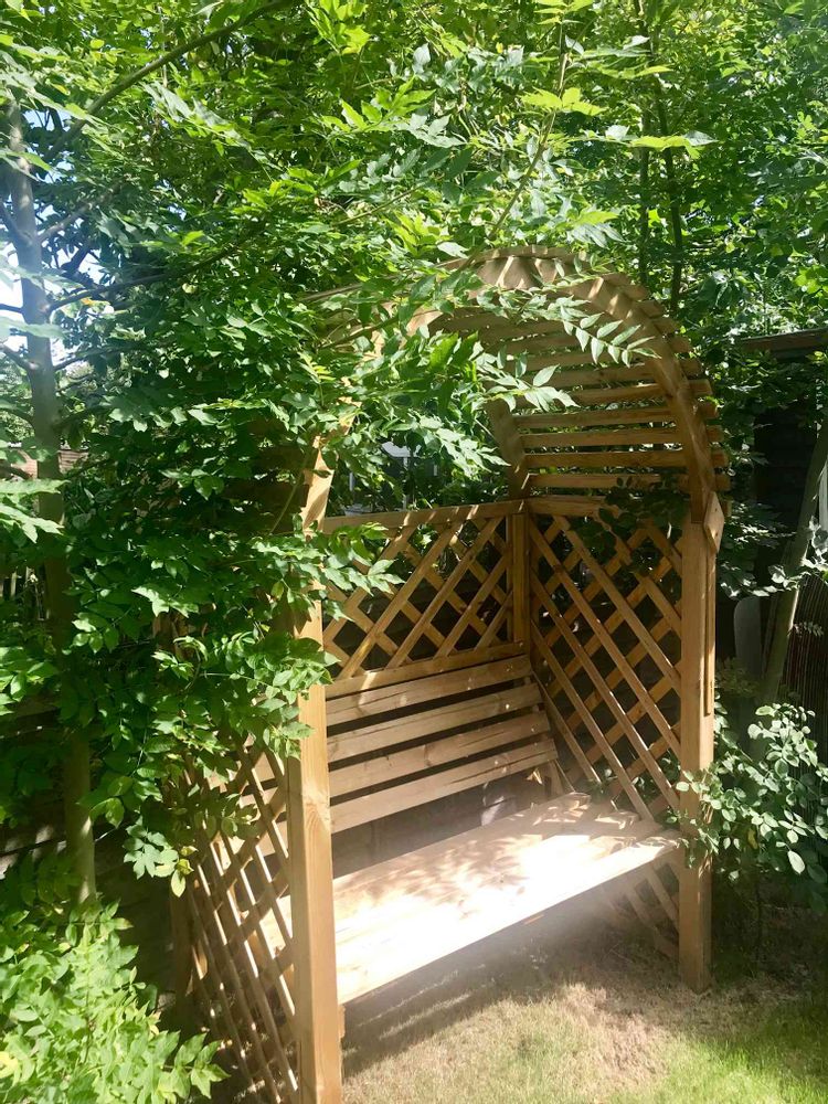 このベンチは本当に心地よいです。私が座ってるとニャンコが側に来て一緒に座ってくれたりするんですよ😸💕
