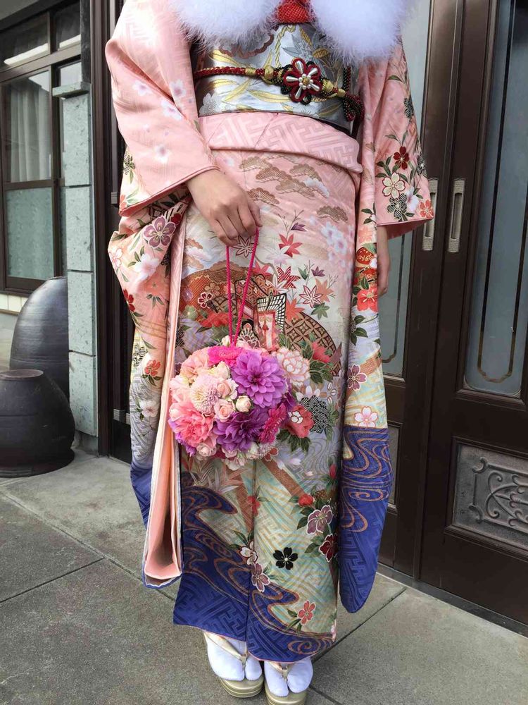 今成人式でお花を持ってたり、髪に挿したりする子が本当に居なくなりました😅着物とボールブーケ👍凄く良いと思います🤗