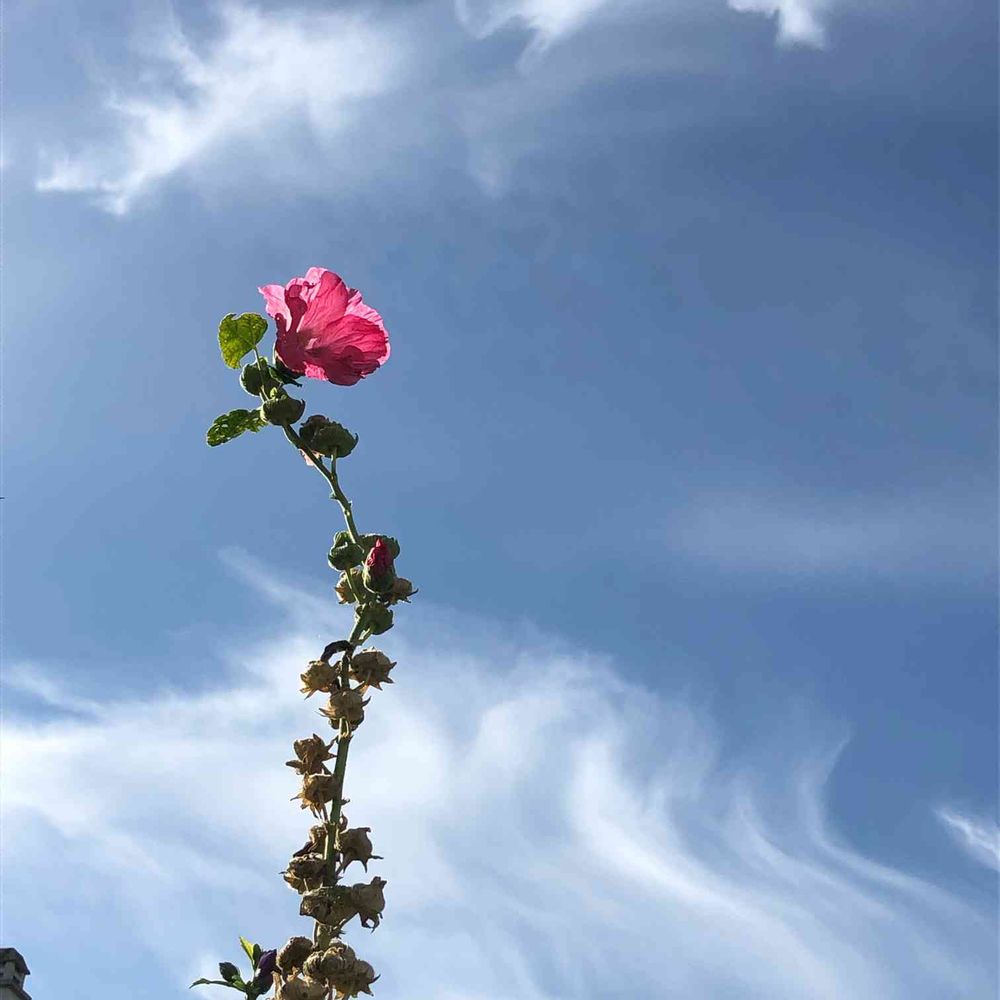 高く高く伸びたタチアオイの最後のお花が空を見上げて咲いてるのに感動しちゃって。