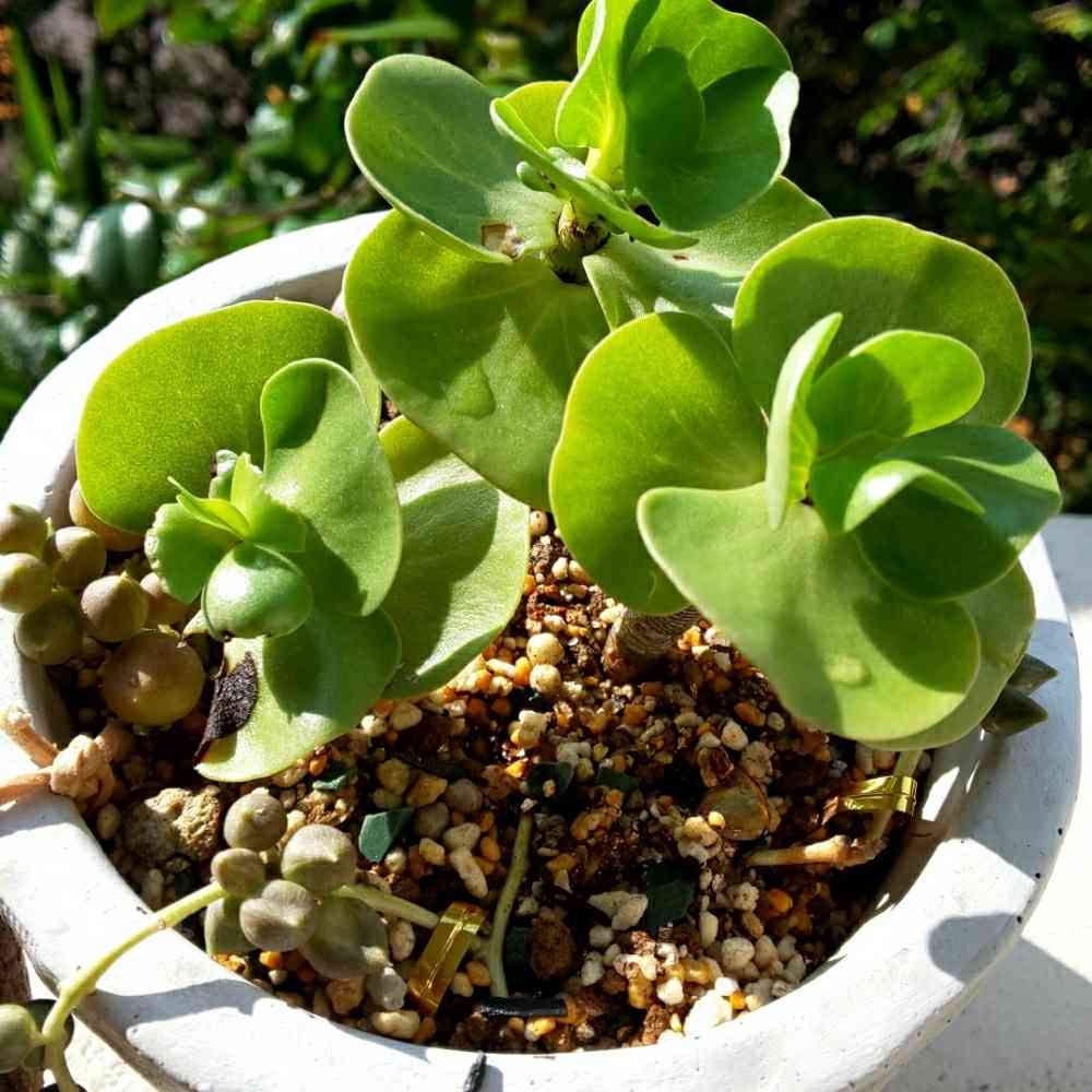 挿し木4カ月目にしてやっと動き出した✨遮光なし雨ざらしで痛んではいるけど葉がしっかりしてるから良しとしよう😊