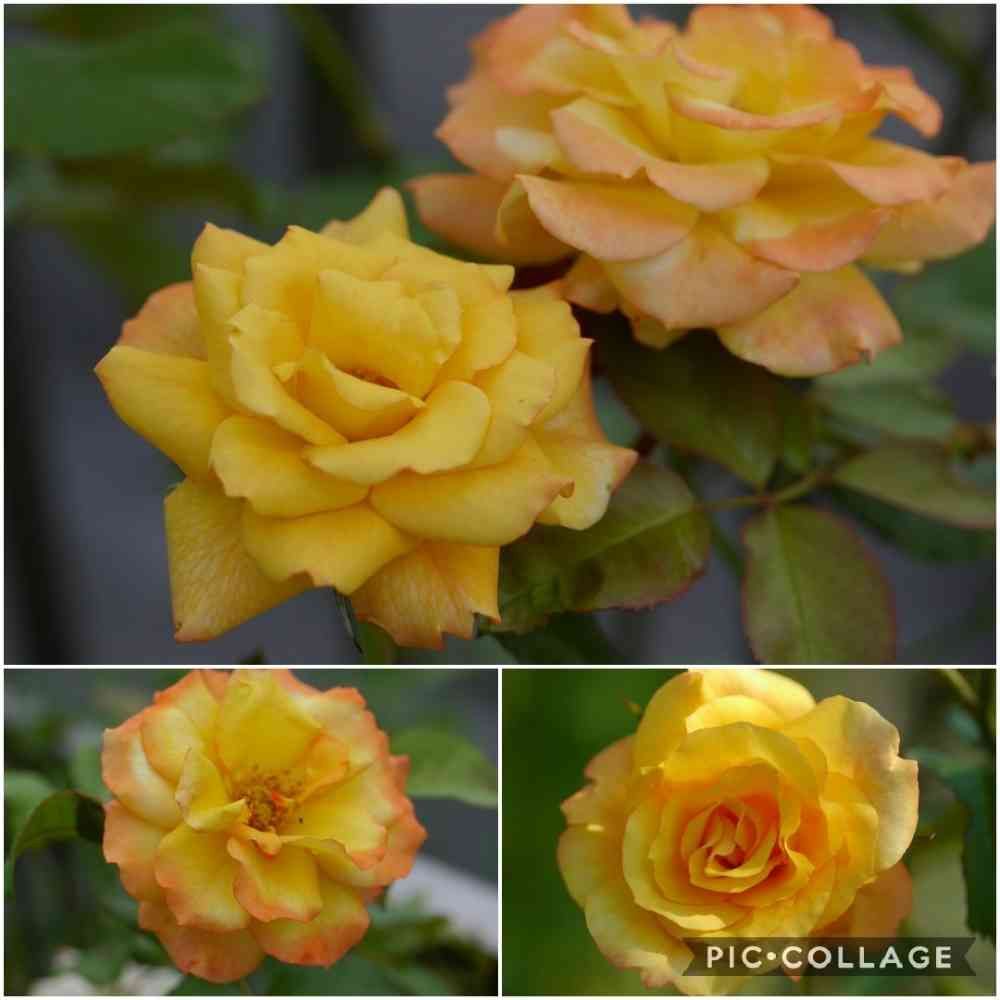 左下↙️の花の後、花びらのオレンジがかった黄色が抜けて行き、ピンクの縁取りに変わって行きます。