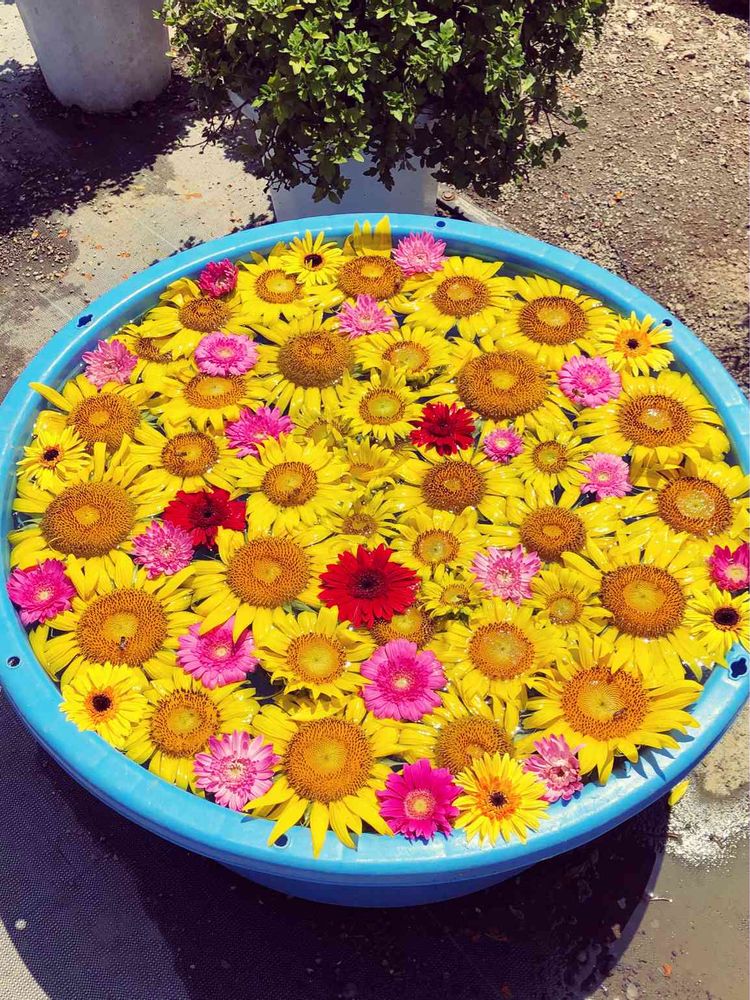 大きな桶にひまわりとガーベラで埋め尽くされてました🤗