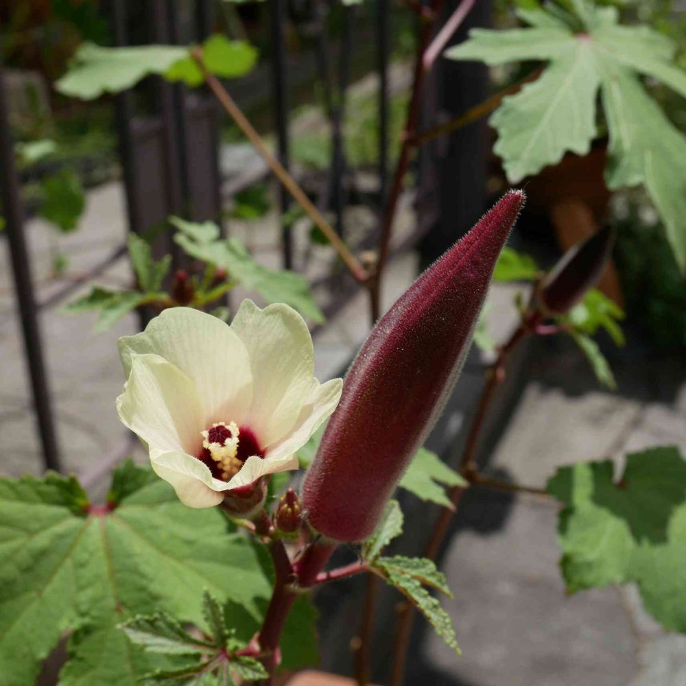 赤オクラのお花も普通のオクラと同じお花が咲くのですね~不思議♡✨初めて知りました