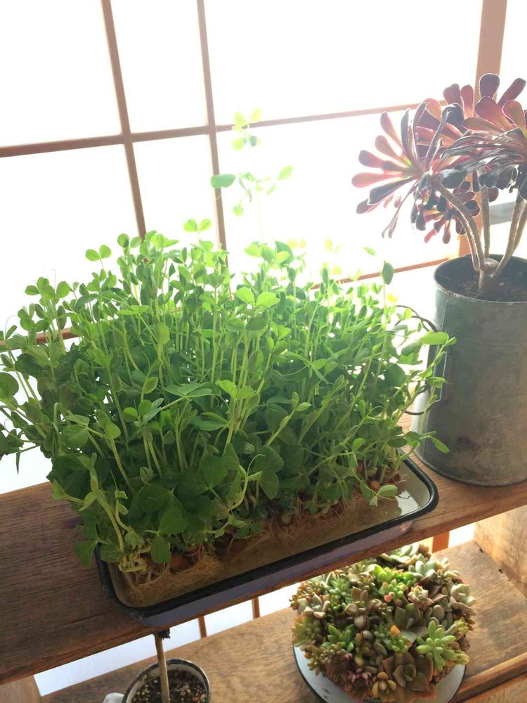 でも、こないだ知り合いのお宅に行ったら、五度目の発芽中?の豆苗に出会いびっくり(笑)