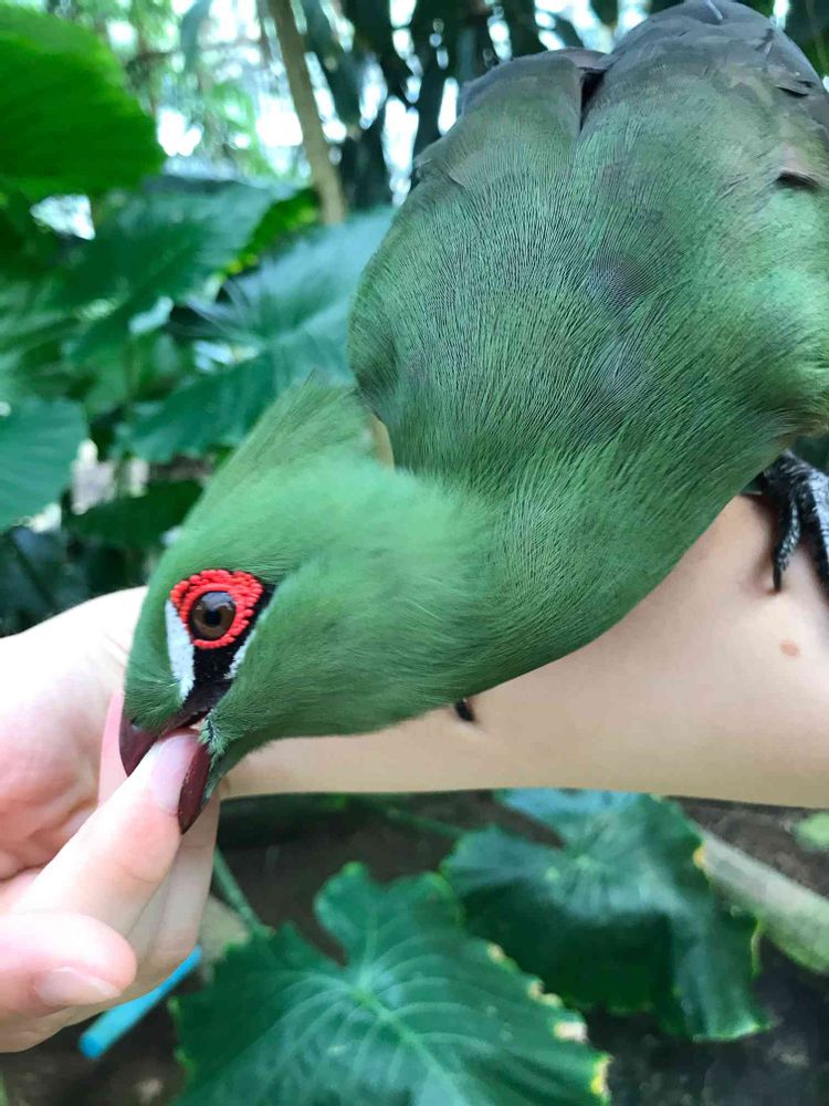 色が私の好きなグリーンと赤綺麗なエボシドリさん😍