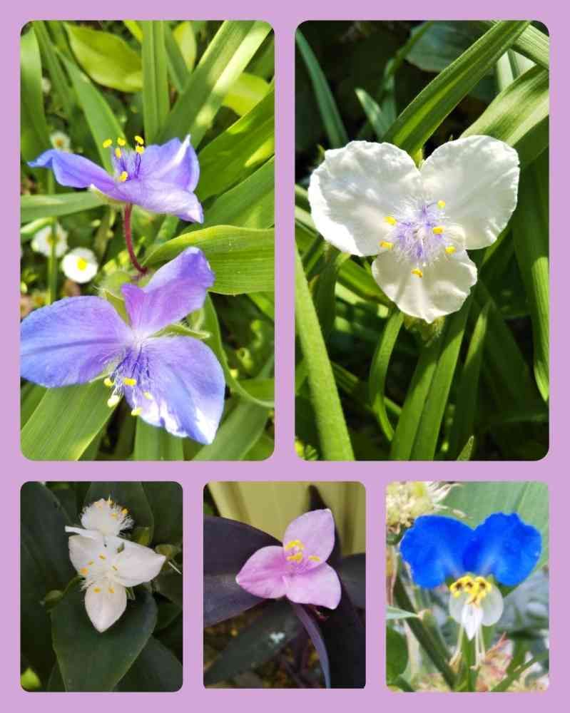 名前がムラサキツユクサなのに色はムラサキ、白、ピンクもあるんですよー!