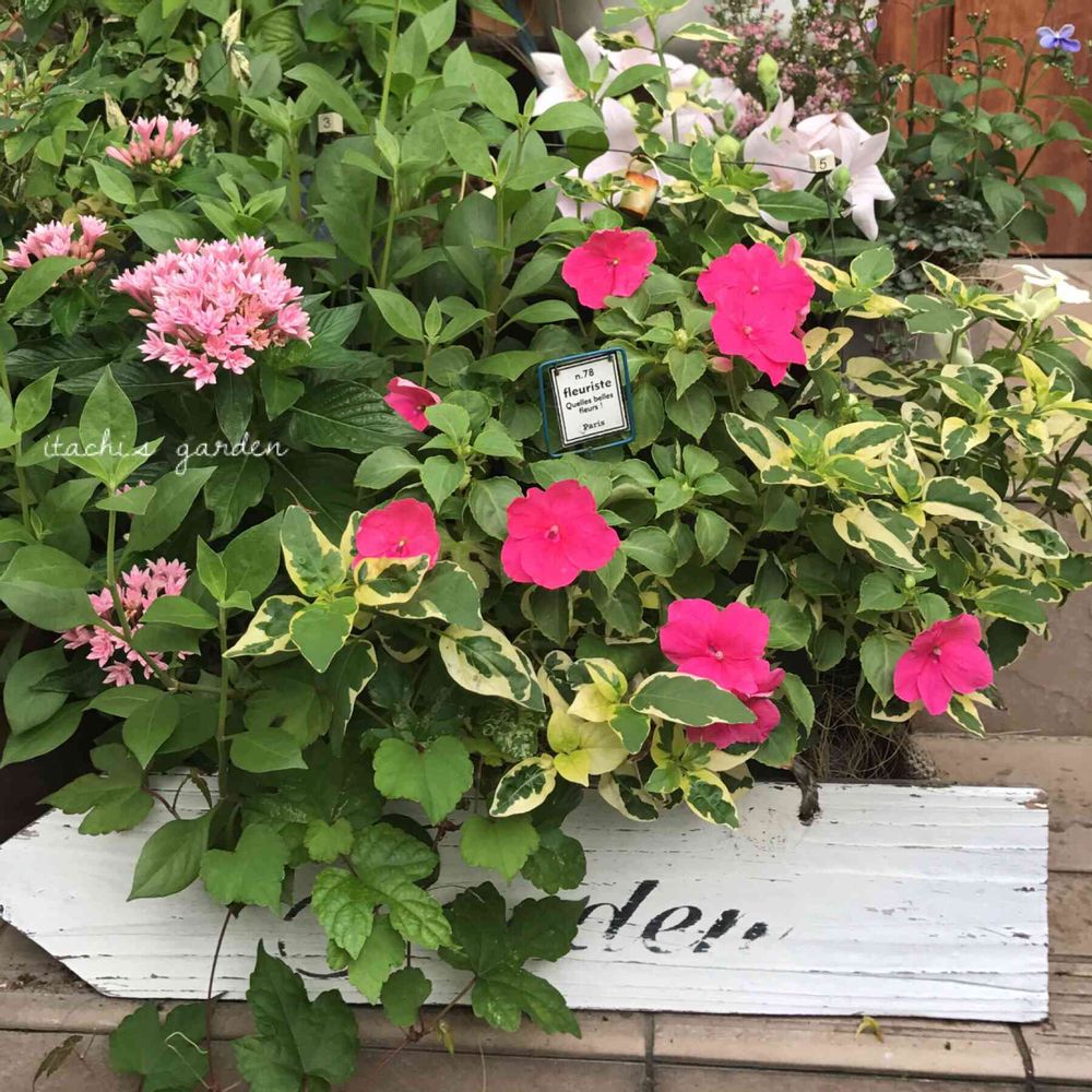 1ヶ月程経ったインパチェンス&ペンタスメインの寄せ植え💕