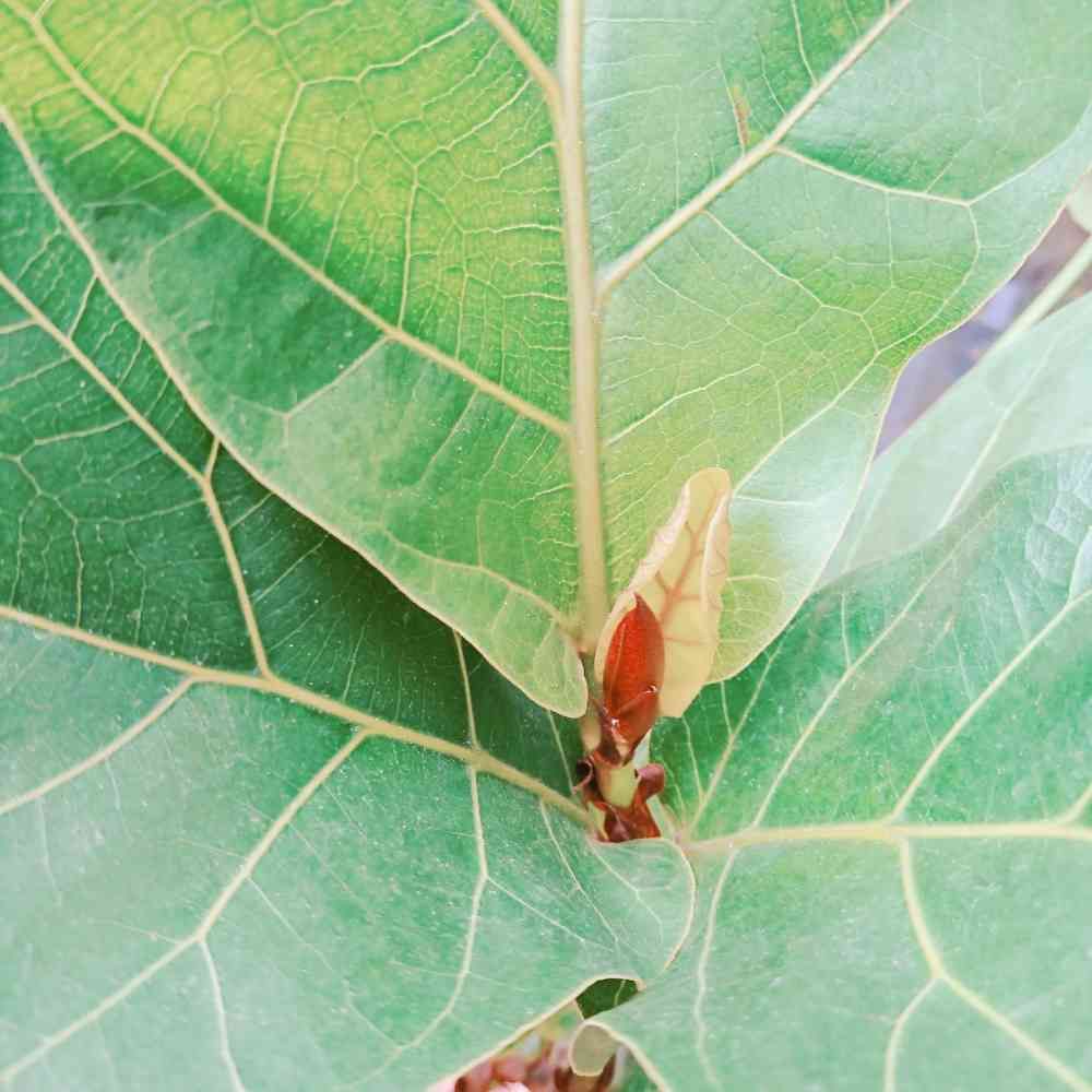ウッドデッキが出来てから外管理にしたフィカス リラータ バンビーノが久しぶりの新芽を出してくれました✨