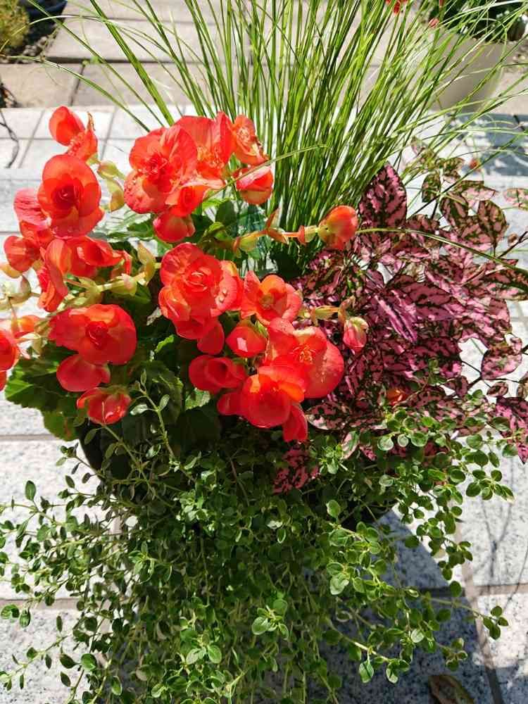 ホームセンターに飾られていたものを参考に四苦八苦して今年最後の夏をイメージして寄せ植えしてみました。。。