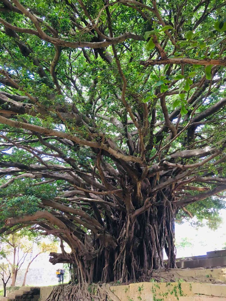 ガジュマルの木は気根がいっぱい垂れ下がって地面に根を張り幹周が大きくなります。先日、寄りかかってる爺様を見ました😅