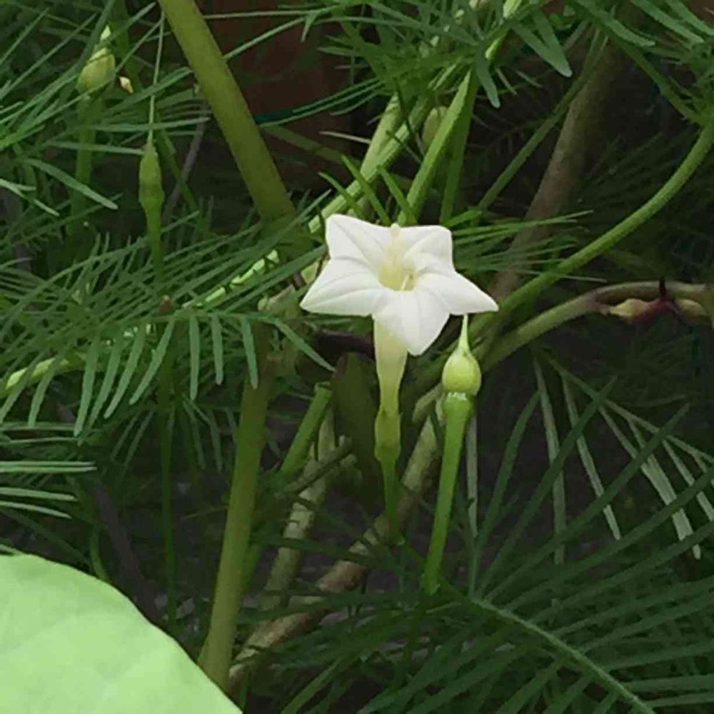 同時に蒔いたのですが、なかなかお花が咲がず、てっぺんのごちゃごちゃの中にやっと1つ咲きました😅