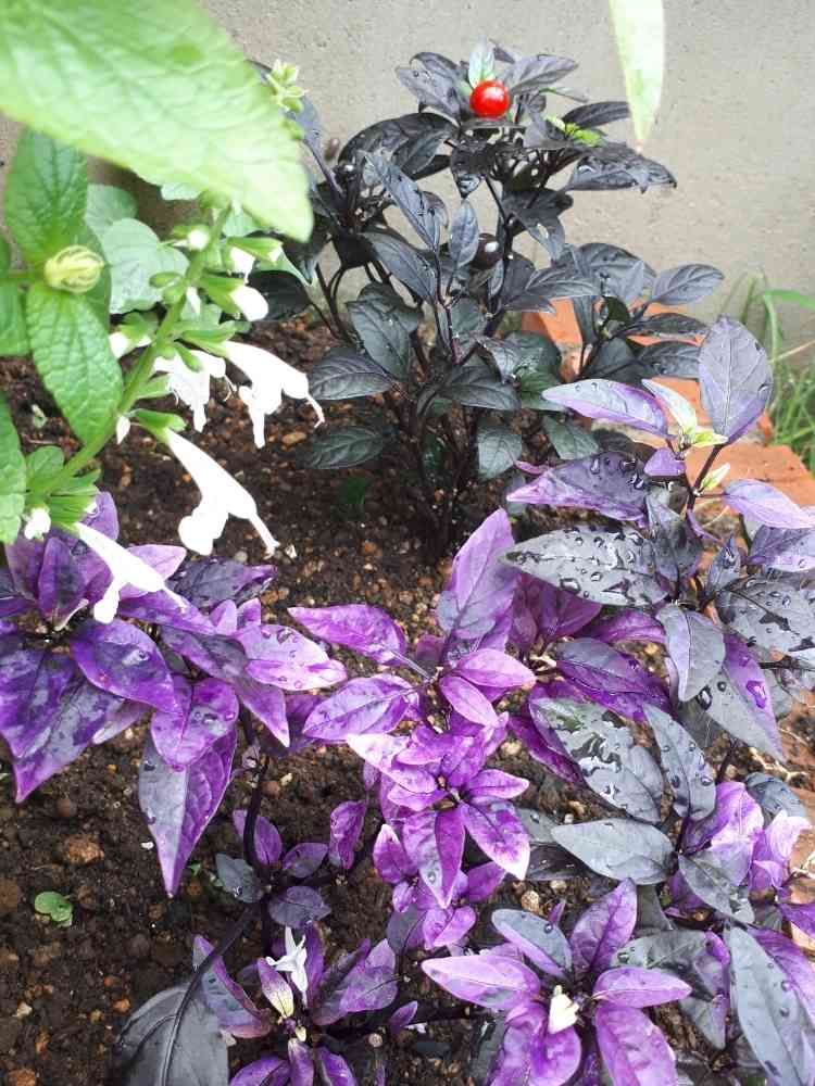 小さな庭,観賞用トウガラシ・パープルフラッシュ,観賞用トウガラシ ブラックパールの投稿画像