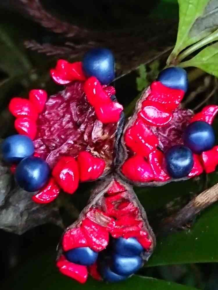 赤い部分でくるんであって、藍色のが種です。ちょっと硬めかな✨