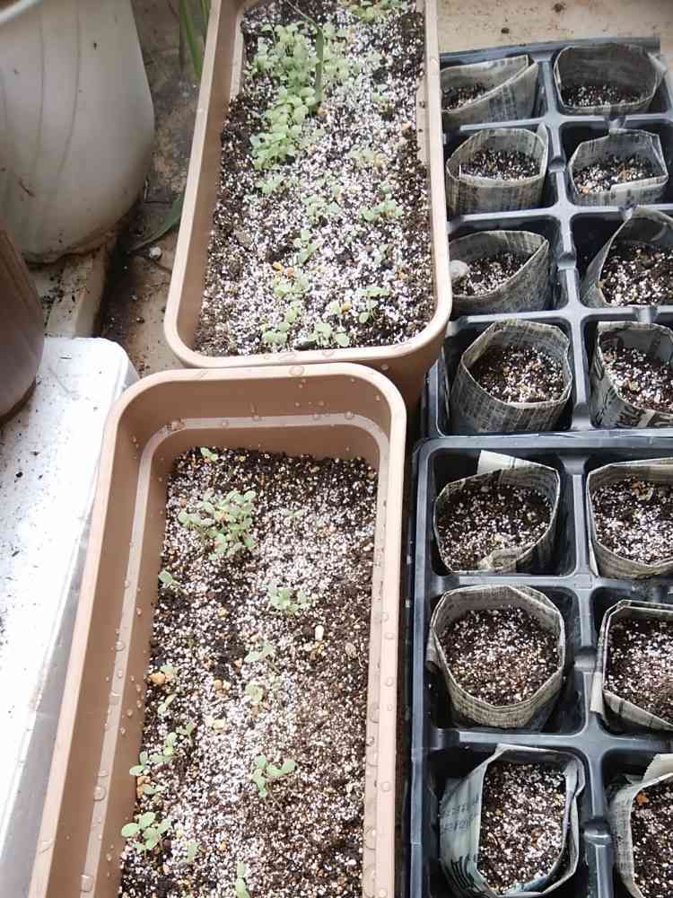 レタスと春菊の芽は生え揃ったかな?ビオラはまだまだですねえ。