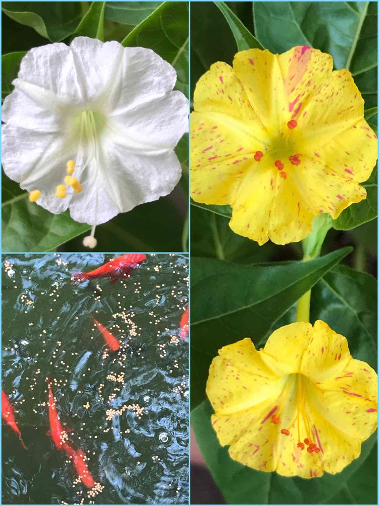 何色が咲くか楽しみにしてたら白と黄色が咲きました。あと今日は暑くなりそうなので金魚で涼しさを(≧∇≦)/