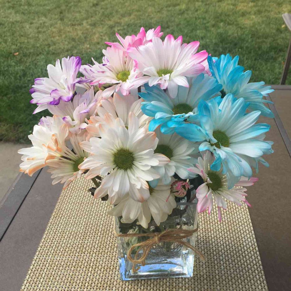 白い菊を染色するとこんなカラフルになるようですね❣️