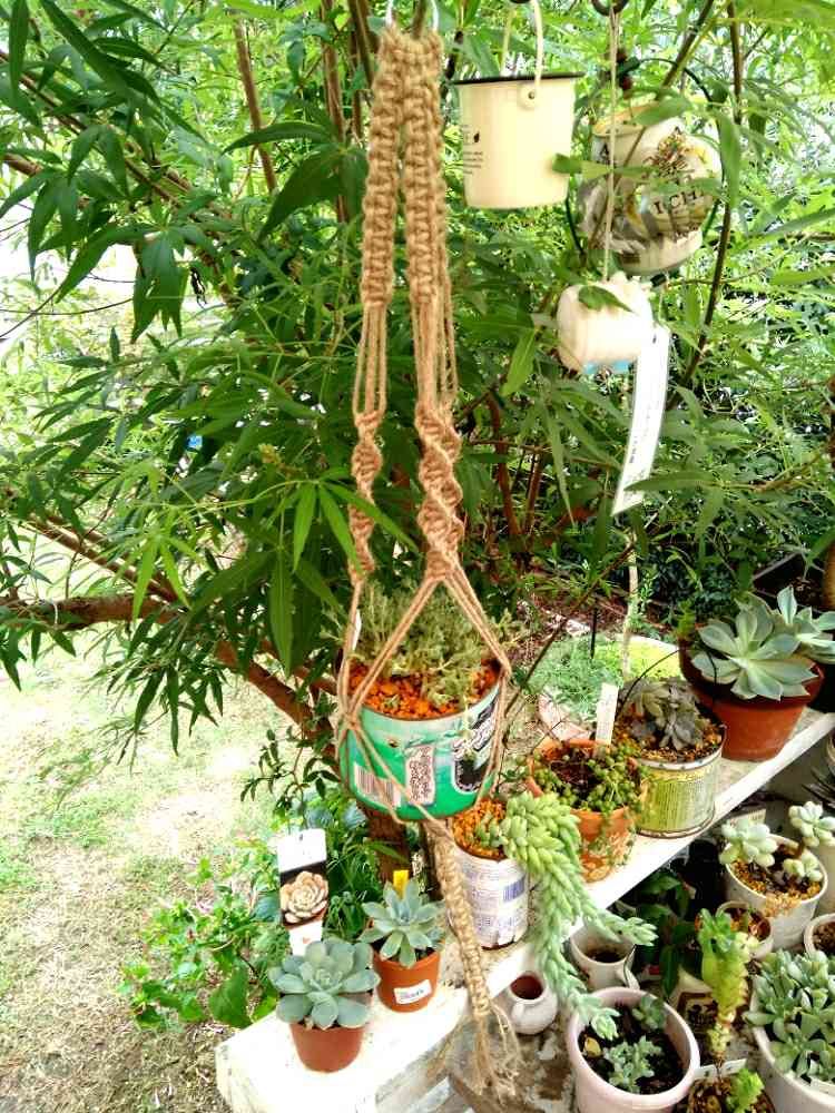 マクラメ編みでプラントハンガー2つ目出来た〜✨少し上達したかもっ😃🎶